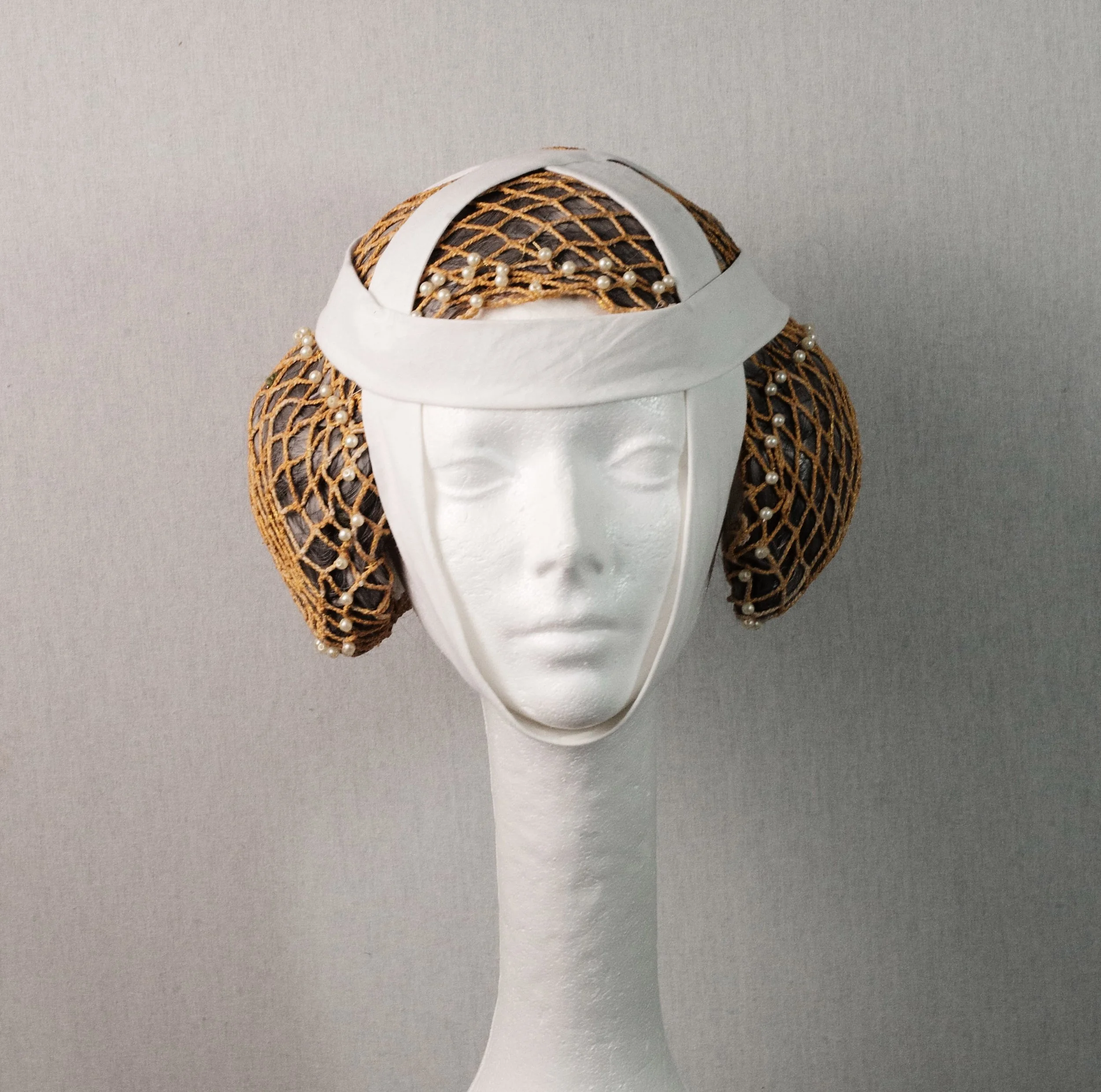 The first headpiece that fits our description of “fascinator,” is this Medieval headpiece combination that, while it may sound a bit like a fast food order today, was a once hallmark headpiece of elegance, refinement, and was an obvious symbol of wealth.